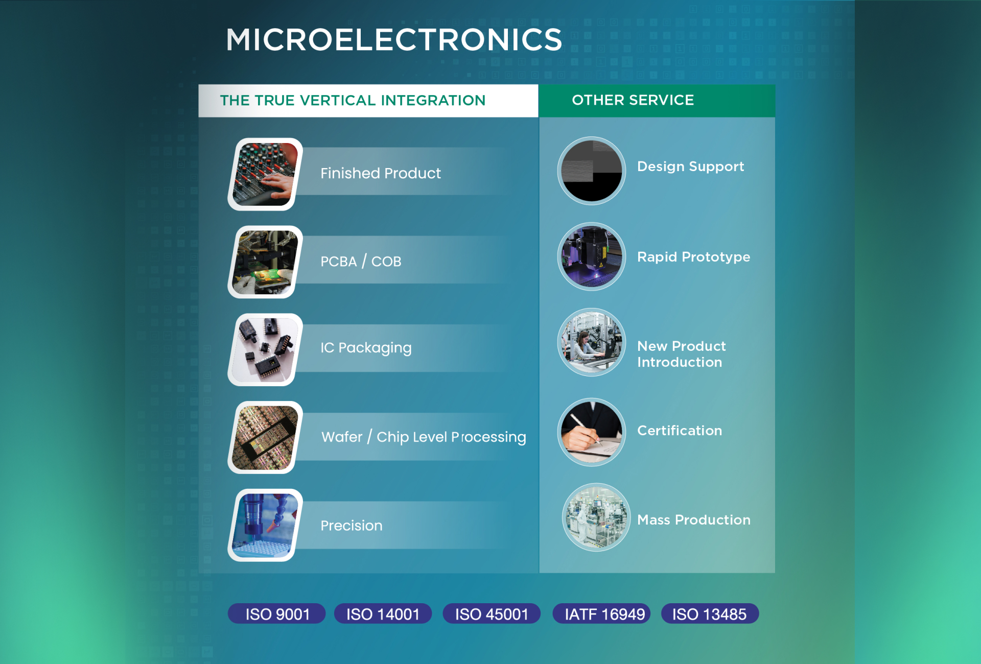microelectronic manufacturing, serving a large customer base