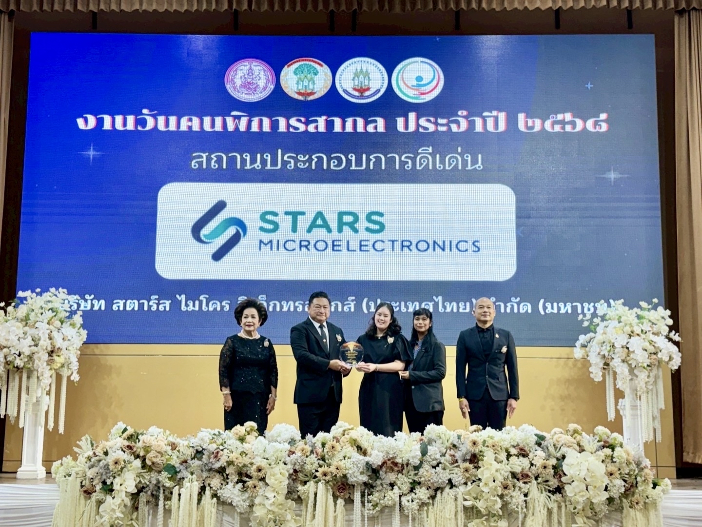 Dr. Nunticha Chaikul, Vice Chairman Executive Committee and Chairman Sustainable Development Committee of Stars Microelectronics (Thailand) Public Company Limited, (SMT) received the “Outstanding Establishment Award for Compliance with Disability Employment Law 2025” at the 2025 International Day of Persons with Disabilities event. The award recognizes organizations that fully comply with disability employment regulations under the Empowerment of Persons with Disabilities Act B.E. 2550 (2007) (Section 33 or Section 35).