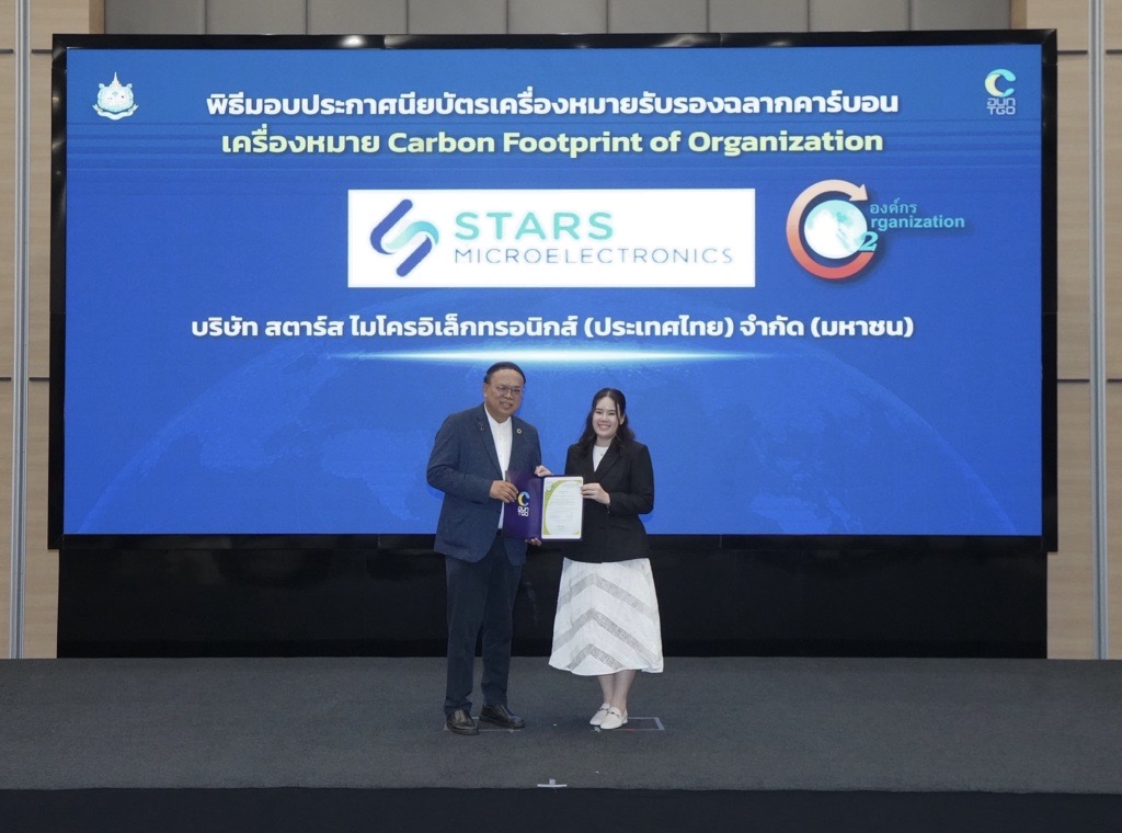 STARS Microelectronics (Thailand) Public Company Limited, or SMT, a Thai electronic components manufacturer and assembler, continues to strengthen its environmental standards by receiving the Carbon Footprint for Organization (CFO) certification. This recognition reflects the company’s strong commitment to systematically managing and reducing greenhouse gas emissions, awarded by the Thailand Greenhouse Gas Management Organization (Public Organization).