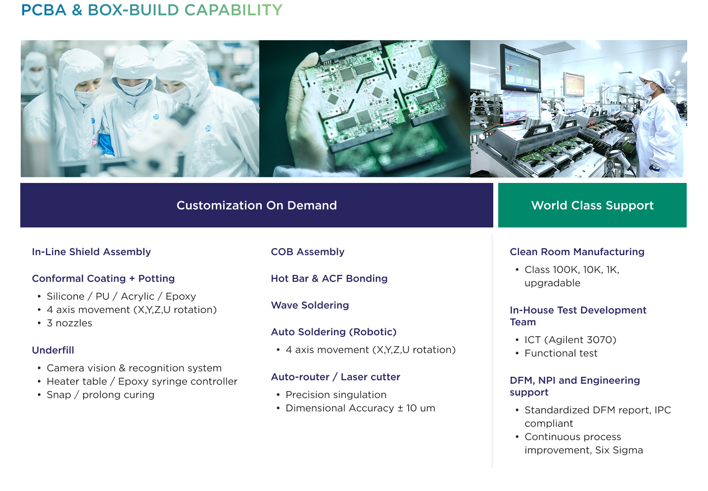 Test & Quality Assurance (3D AOI, X- ray, ICT, FCT, Etc.). Tester is applied throughout our production lines to ensure every product meets the highest quality standards. We are also capable of customizing test systems to match customer-specific requirements.